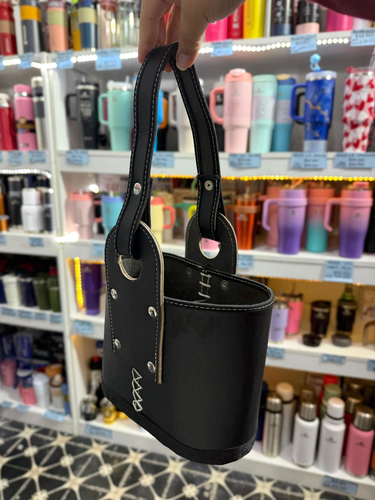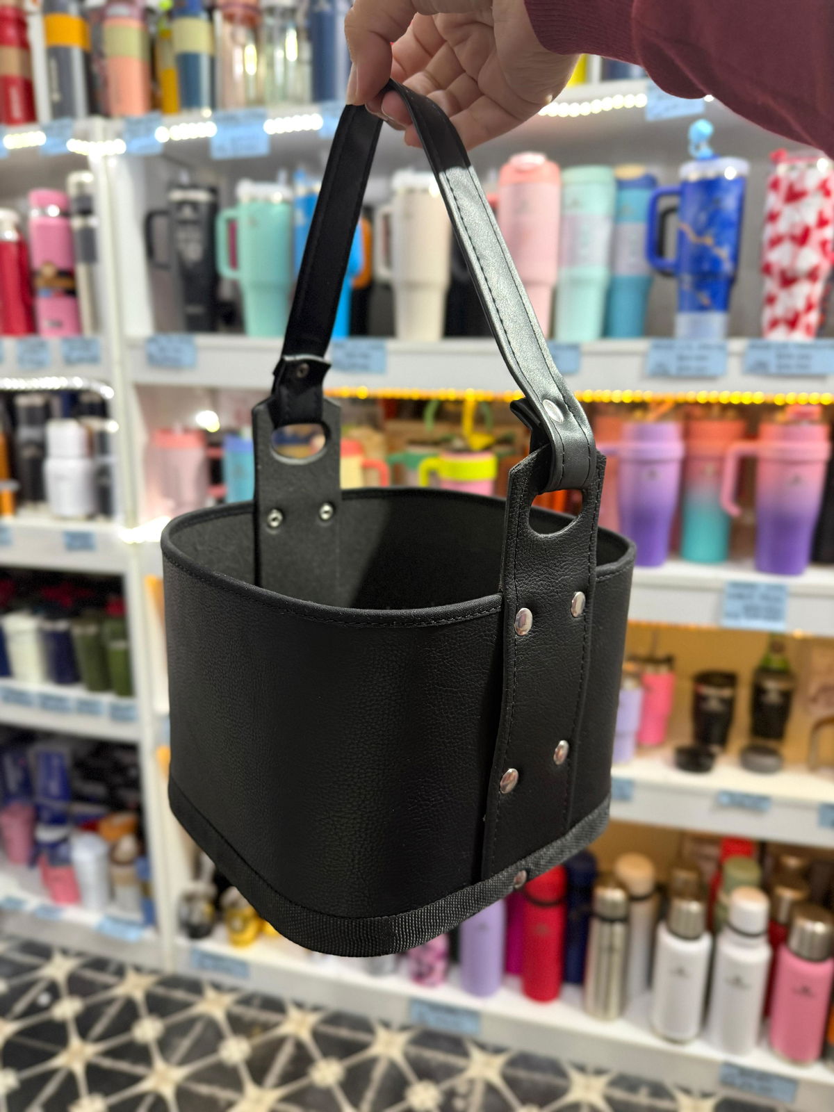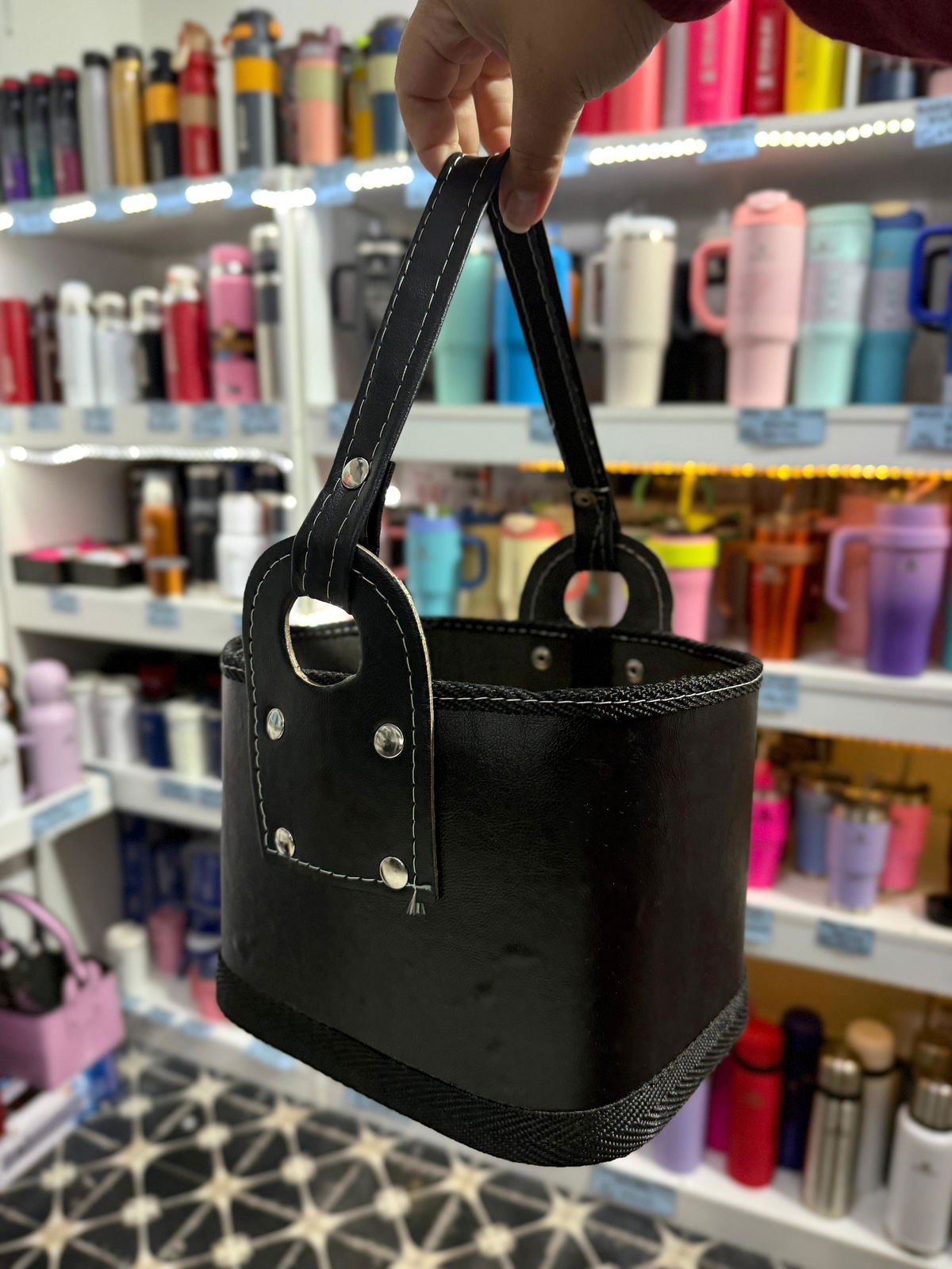 Canasta de eco cuero color negro, 2x2 con 4 espacios y 2x1 con 2 espacios