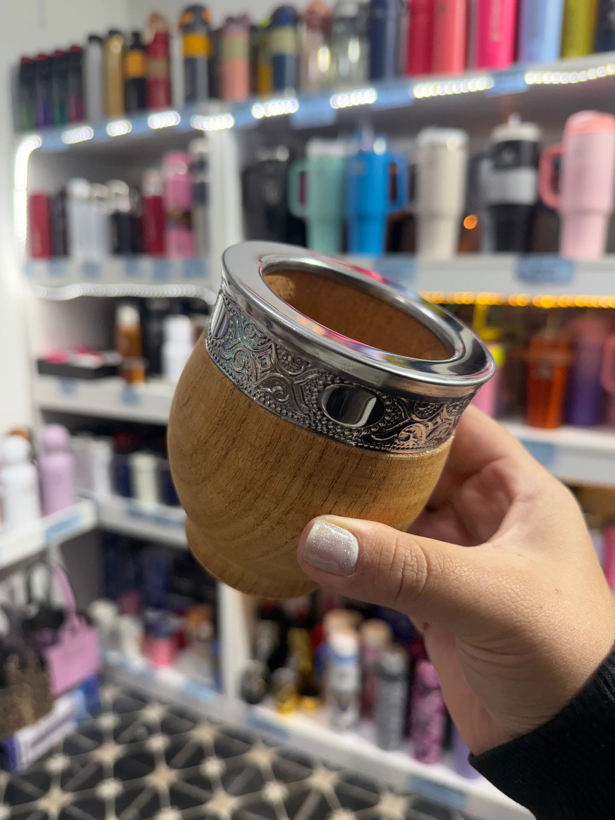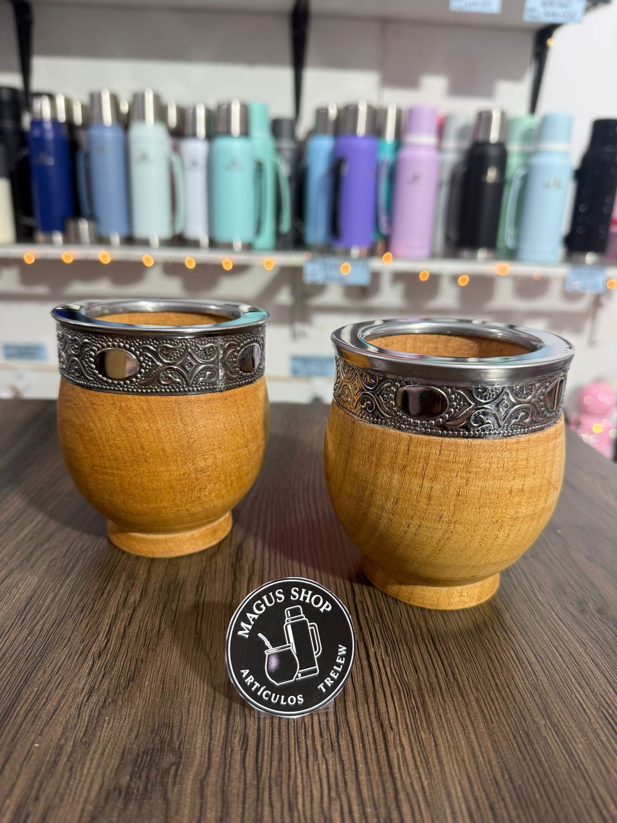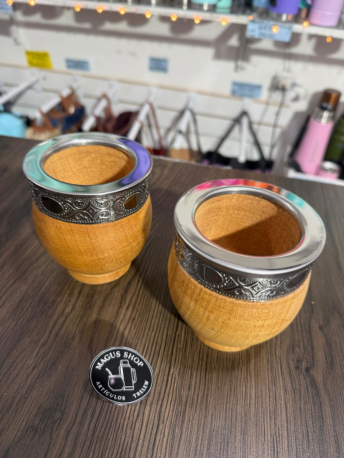 Mate tipo imperial de madera de algarrobo con virola de acero inoxidable