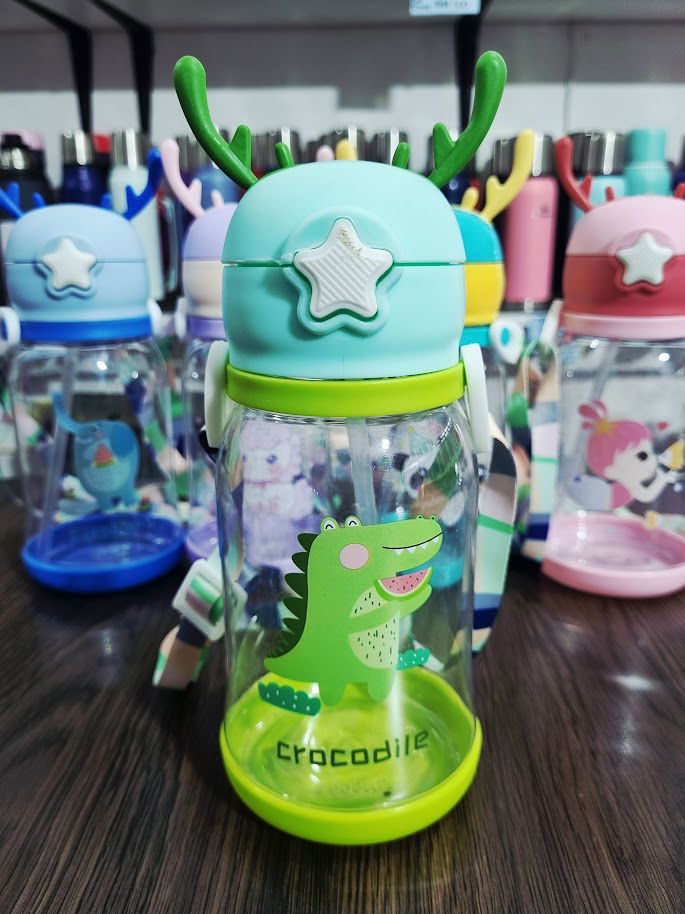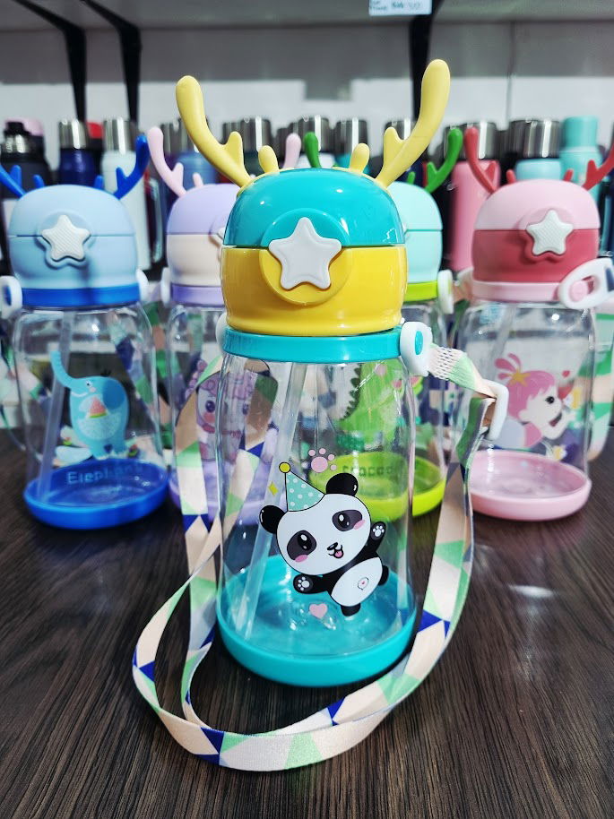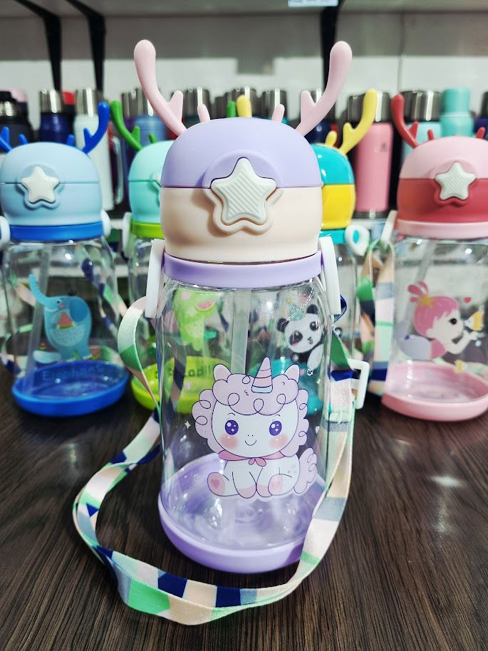 Botella plástica infantil de cuernitos, con correa.