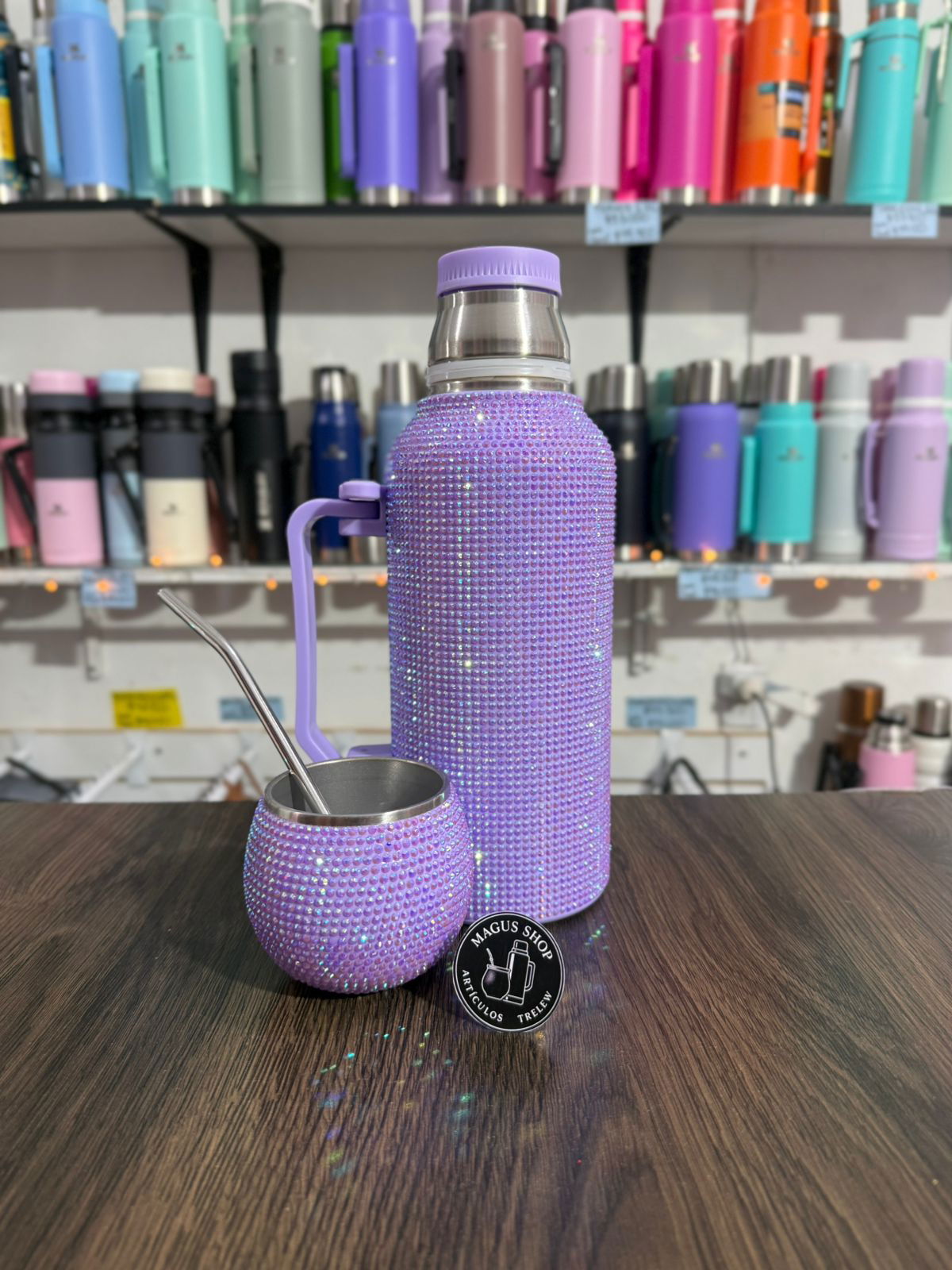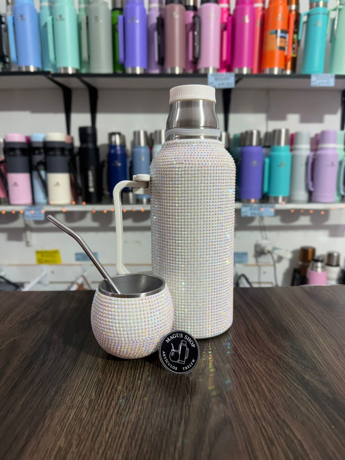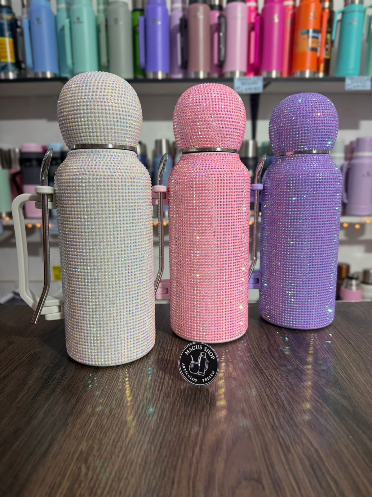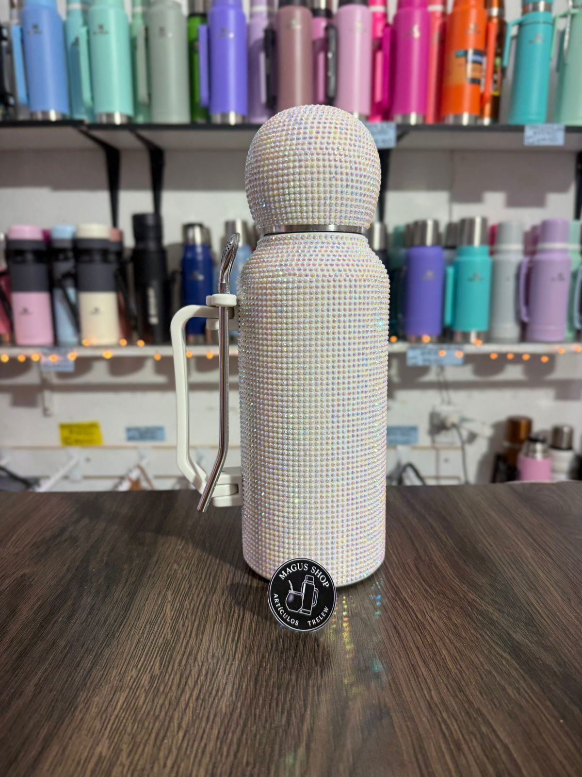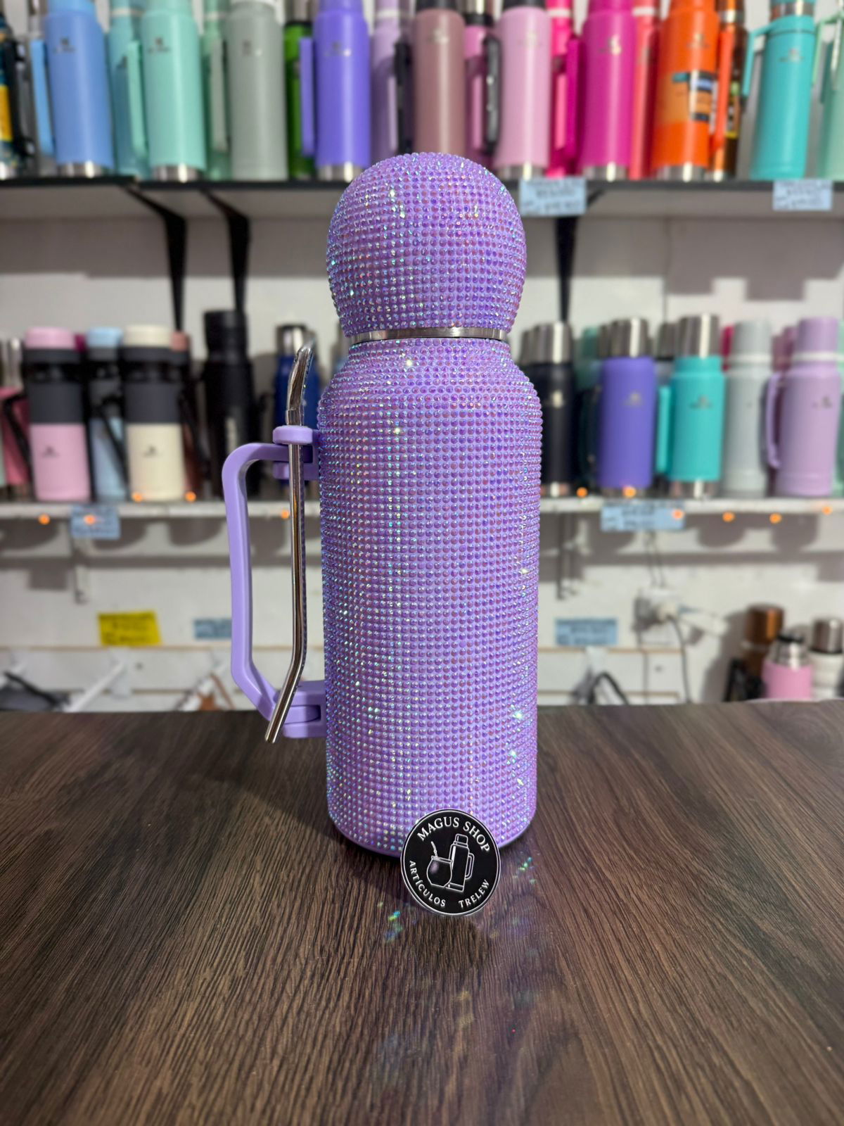 Termo astronauta con strass de 1,3 litros con manija, 3 en 1. De acero inoxidable con doble capa de acero.